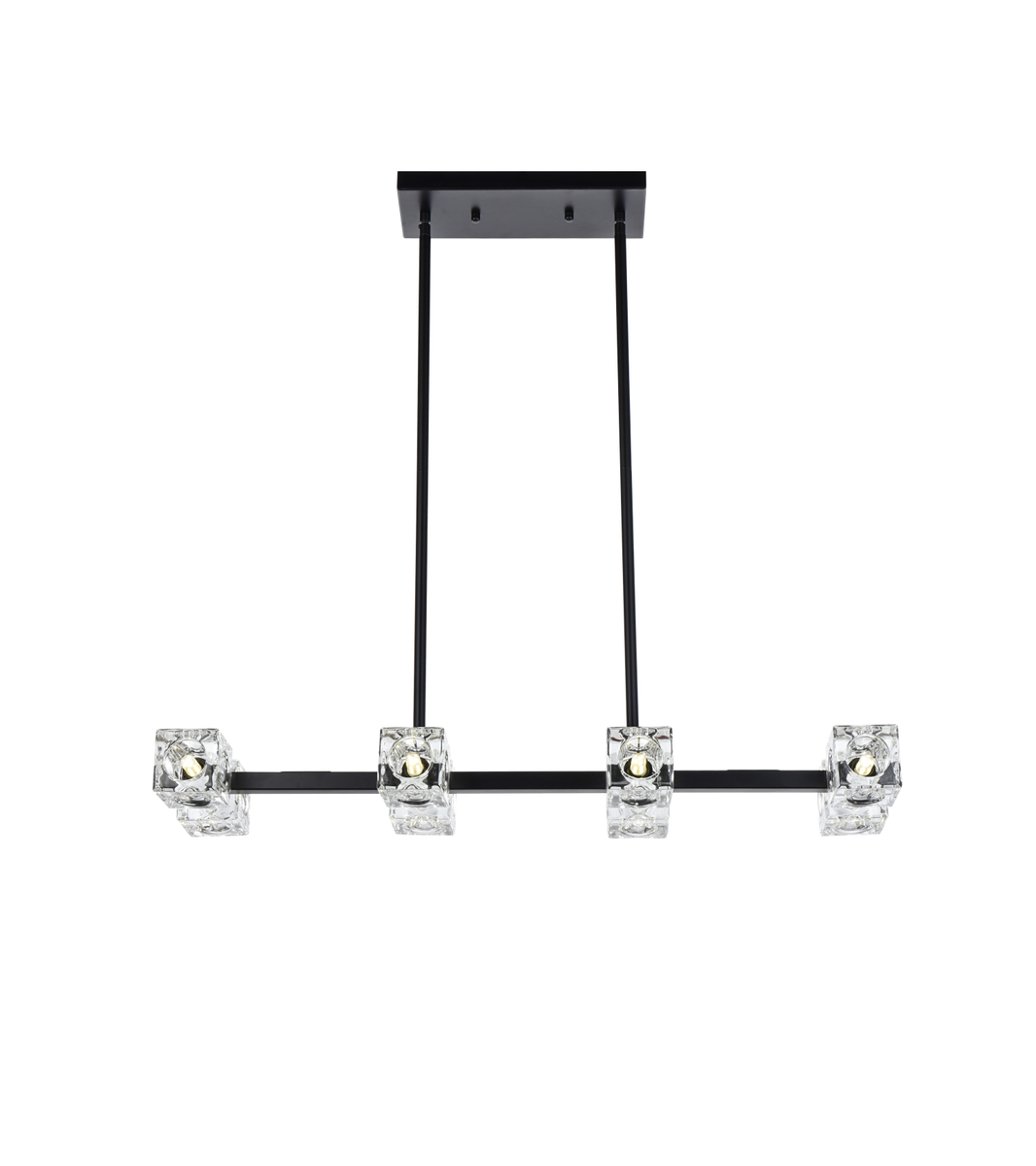 Elevate your space with our Lyra 30-inch Pendant Chandelier, seamlessly blending modern aesthetics and brilliance. Boasting eight lights with distinctive dimpled square glass for a uniquely stylish look, its durable iron base combines contemporary design with industrial elegance. The inclusion of two 46-inch rods ensures stability and introduces a sleek, modern aesthetic. Experience hassle-free setup and enjoy comprehensive, uniform lighting with a 360-degree beam spread, creating a visually captivating and well-lit ambiance in any room.