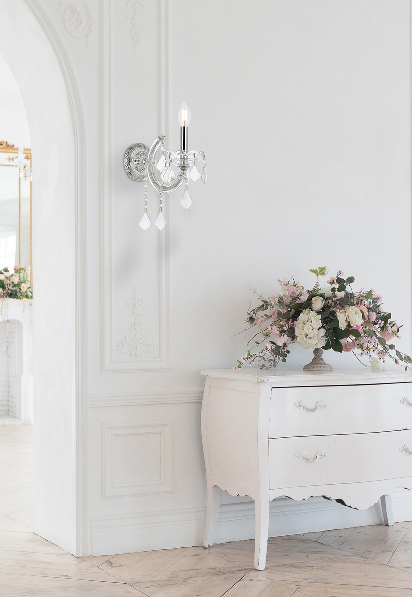 Maria Theresa 1 light Chrome Wall Sconce Clear Royal Cut Crystal