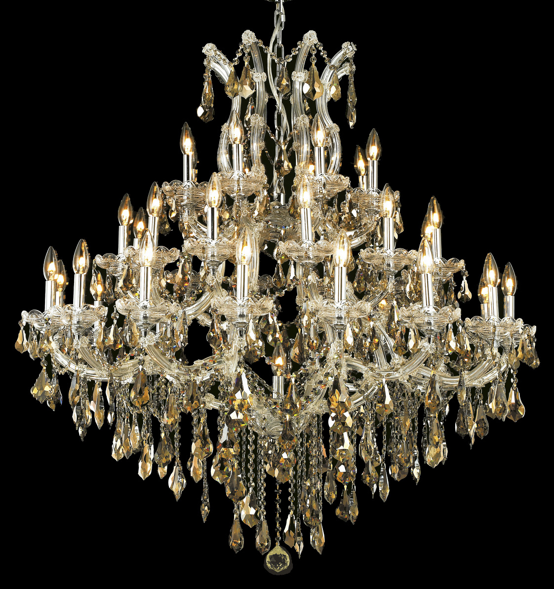 Maria Theresa 37 light Chrome Chandelier Golden Teak (Smoky) Royal Cut Crystal