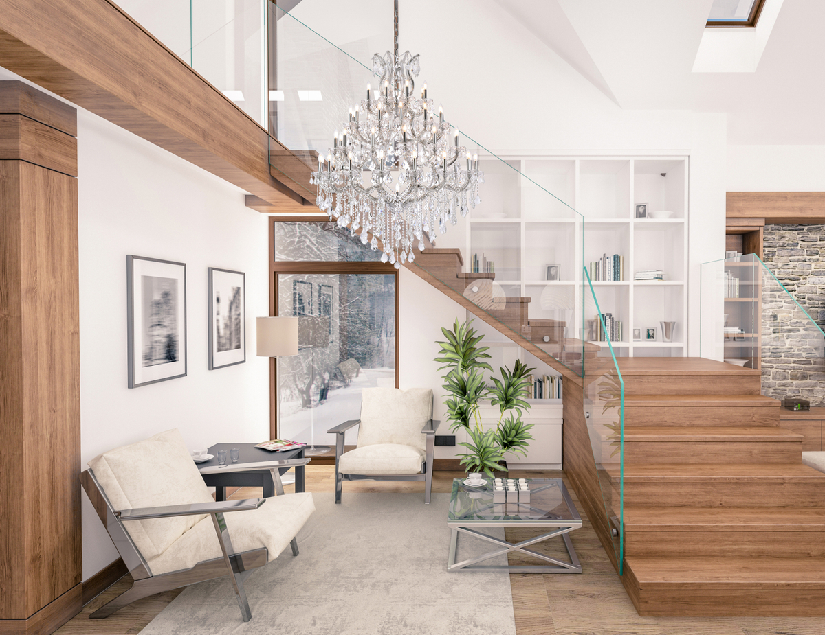 A heavenly high point to your home, Maria Theresa collection pendant lamps are ablaze with hundreds of resplendent crystals. Copious strands of sparkling clear or golden-teak crystals dangle from elaborate tiers of glass-coated steel arms in your choice of a chrome, gold, golden-teak, white, or black finish. An imperial favorite for the stairwell, dining room, or living room.