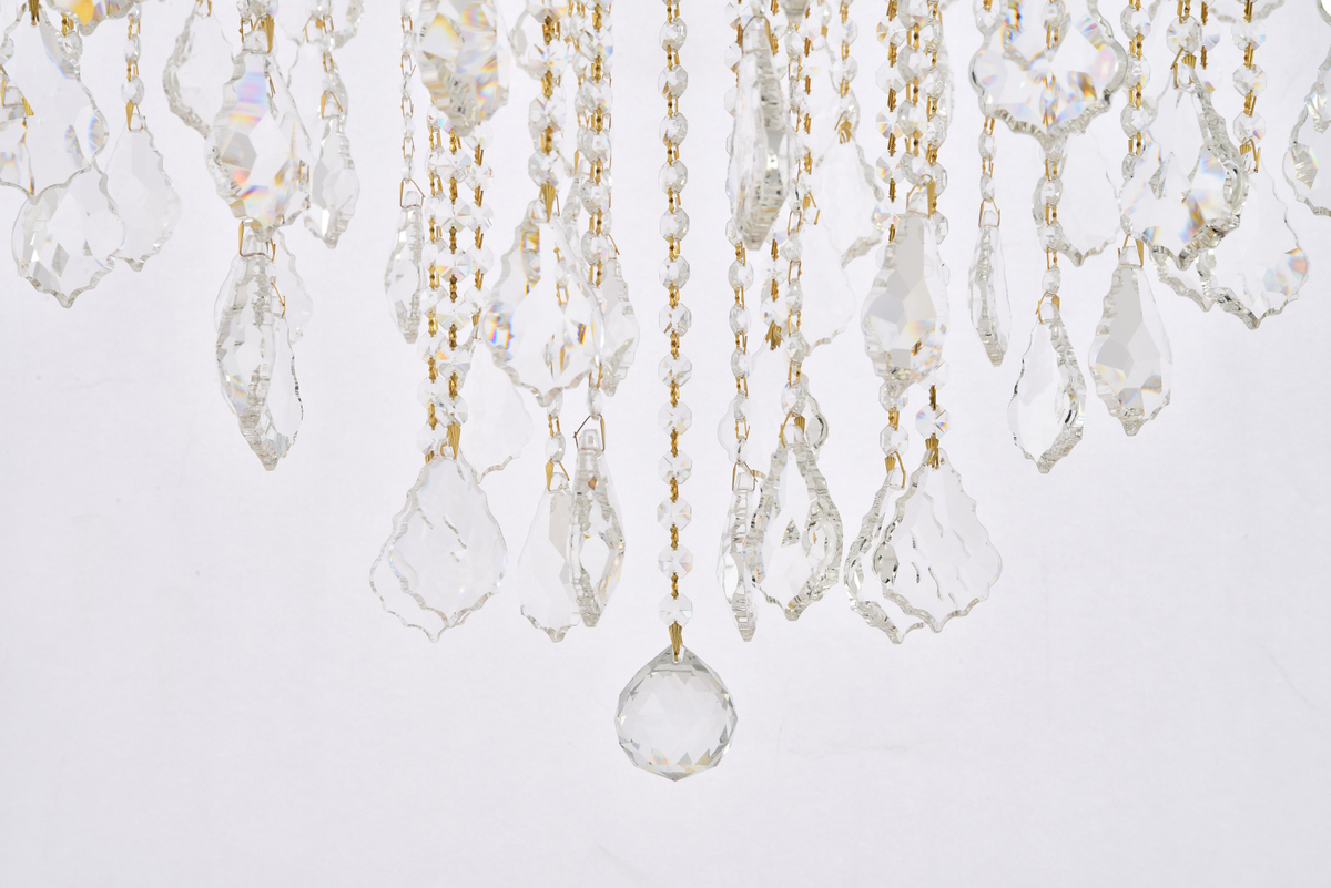 Hundreds of clear royal-cut crystal strands arch and dangle