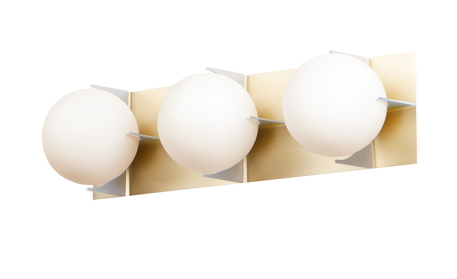 A homage to Mid-Century Modern design, the Finn collection features large Satin White opal glass shades on a contemporary finish combination of Satin Brass and Brushed Platinum. The glass shades are embraced by laser cut fins to create a clean, yet dramatic look.