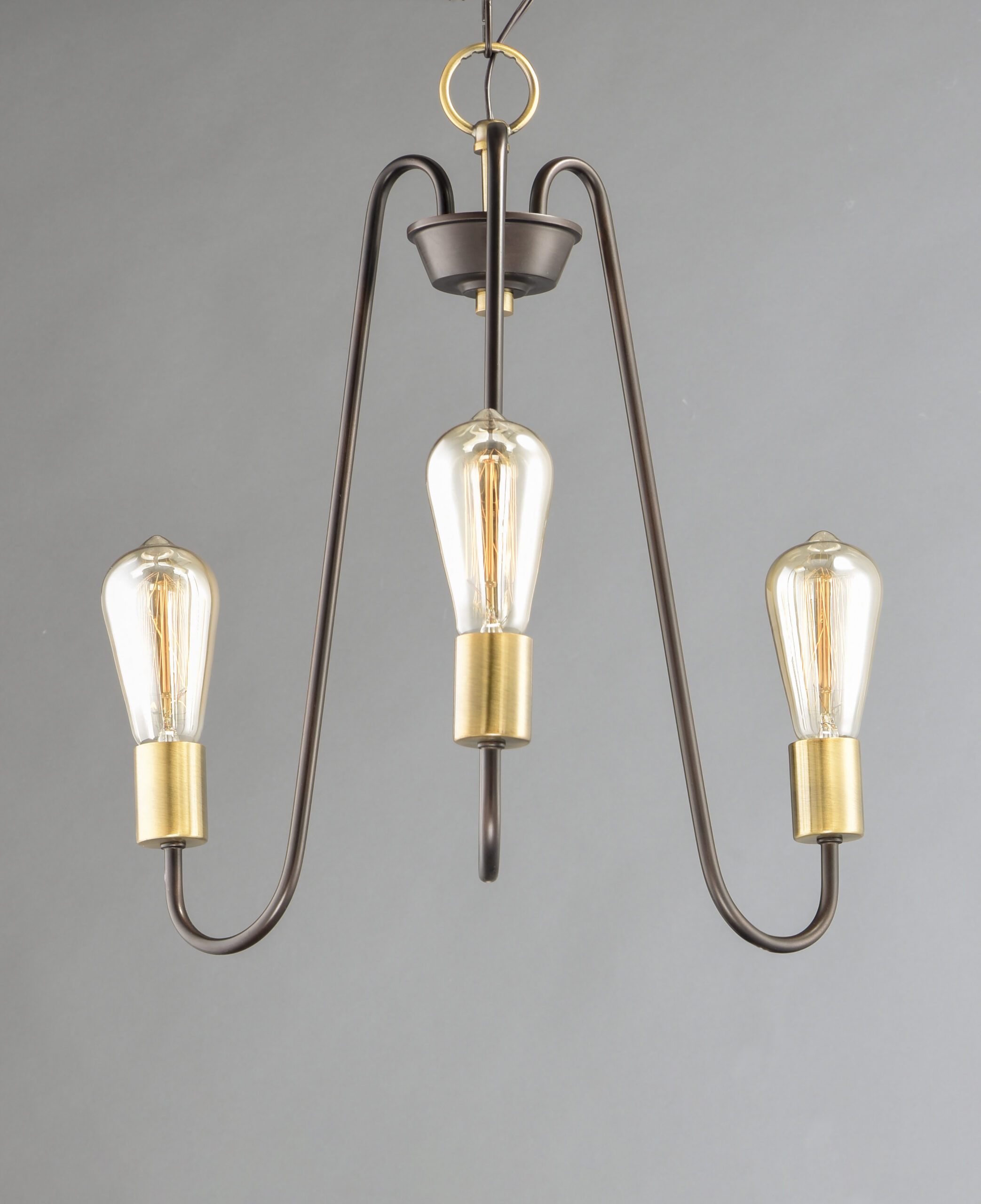 Arms that gracefully descend from a collector cradle a round metal band that can be removed for a minimalistic look. Available in two finish combinations: Black with Satin Nickel Accents and Oil Rubbed Bronze with Antique Brass accents.