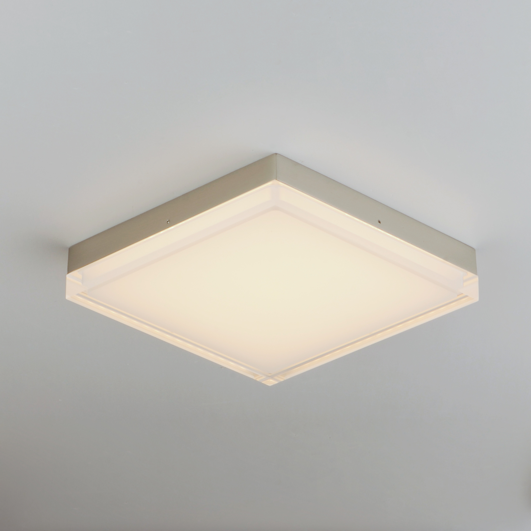 Our ever popular flush mount available in an updated form. Featuring die-cast aluminum bases available in Satin Nickel or Polished Chrome with dimensional acrylic diffusers, Clear on the outside and Frost on the inside creating an intriguing optical effect. With increased lumens and better pricing this collection is the second generation in an already famous collection. Use the optional pendant adapter to convert any size to a hanging fixture.