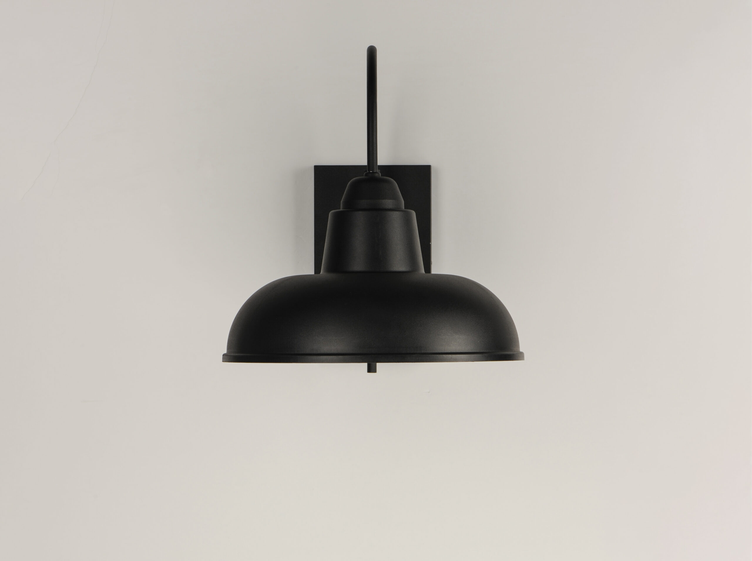 A powder coat aluminum frame support a durable polycarbonate shade in classic RLM styles. This an excellent choice for extreme environments like coastal areas. The combination Black frame and White shade create a dramatic look.