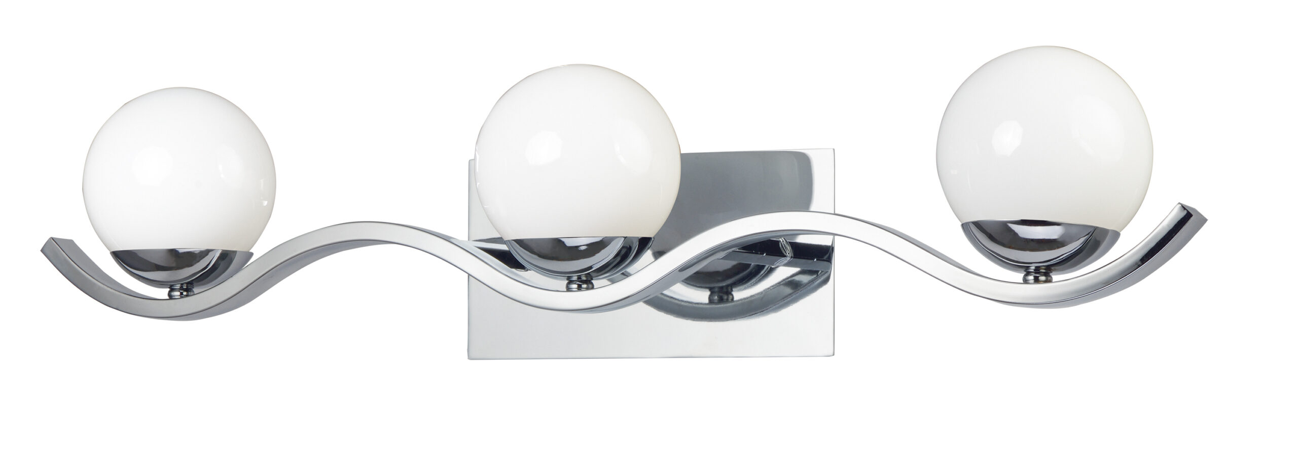 Opal White glass balls suspend from a wave like metal arm finished in Polished Chrome. The clean contemporary design provides excellent illumination and classic design appeal. Brackets can be installed either glass up or down.
