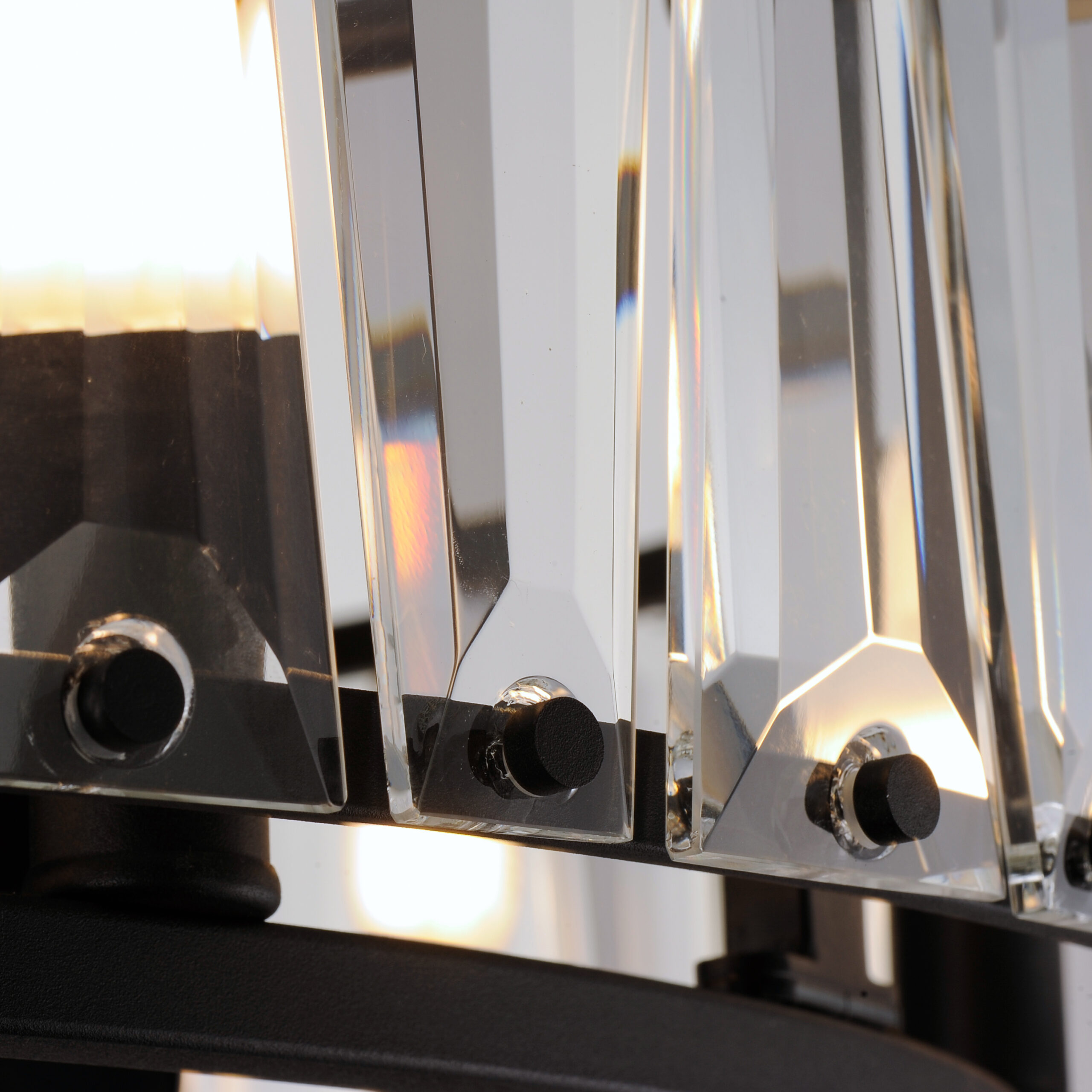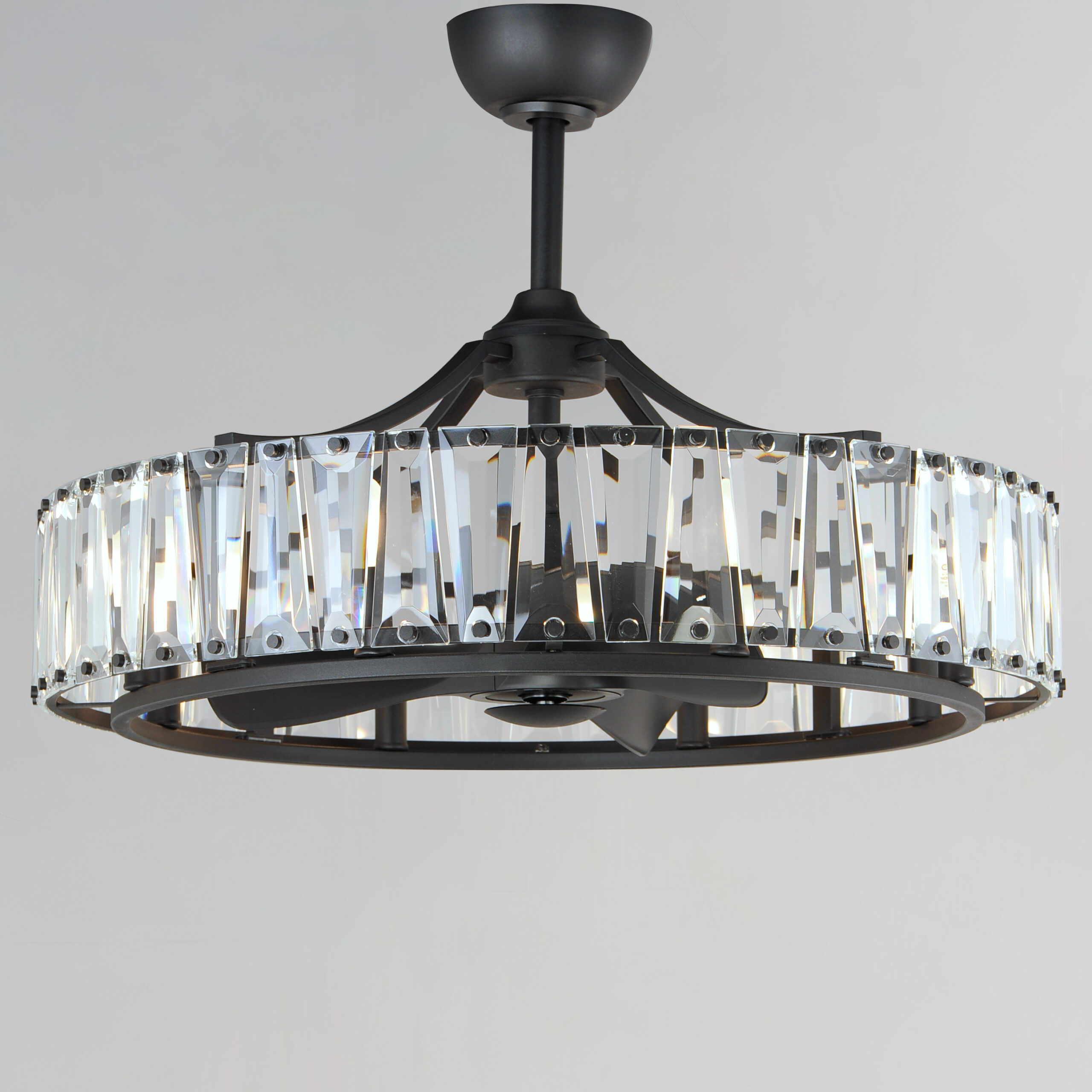 Boldly beveled tapered glass panels are arranged around a metal frame finished in either Black or elegant Golden Silver. Evocative of an earlier era, the glitz and glamor of the Odeon collection is a timeless choice for your interiors. Transform the look with the coordinating Fandelight option that integrates Wifi-enabled functions to operate the fan and lighting.