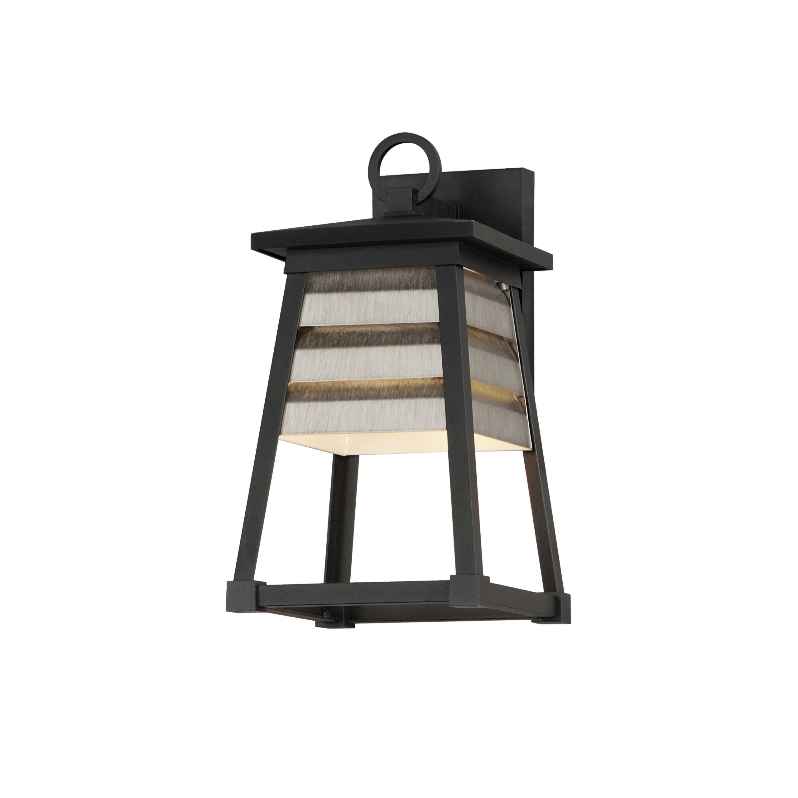 Contrasting louvered insets are set within Matte Black trapezoidal frames. The frames are made of Vivex so their finish will withstand harsher climates. The louvered panel insets are made of aluminum and feature a full cut-off design aesthetic making this design suitable for Dark Sky applications. An added benefit is the removal of glass altogether, adding a robust quality to the construction of the fixtures leading to longevity and lower maintenance. These wide plank louver panels complement the design’s coastal styling adding interest in contrasting Weathered Zinc or White options, while the matte Black finish blends into the frame for a cleaner, more seamless approach.