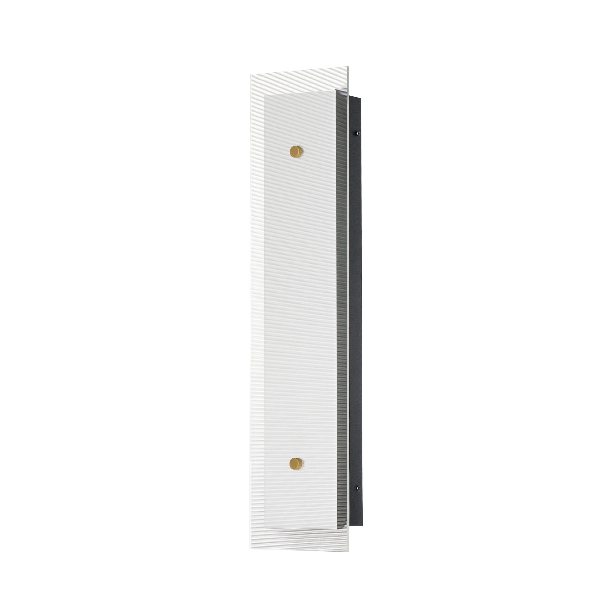 Panes of clear ribbed glass are secured with oversized knurled Natural Aged Brass pins on a Matte Black frame. Obscured by the glass texture, the integrated LED is not only soft on the eyes but also provides an abundance of illumination. Varied configurations of linear pendants, flush mounts, desk lamp, and vanity lights round out this collection. The vanity lights feature an easily accessible 5-CCT toggle switch that allows you to set different light color temperatures during or after installation.