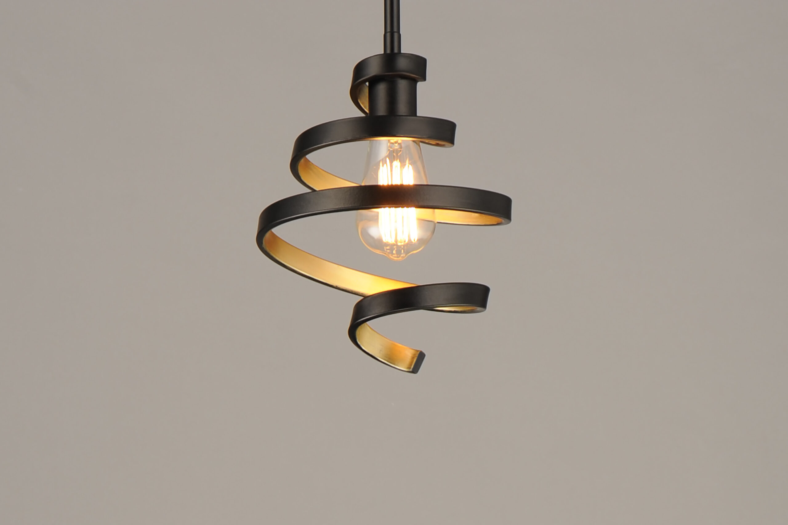 This unique design features spiraling frames finished Black on the outside and Gold on the inside for a dramatic lighting affect. Choose G25 bulbs for a transitional look or vintage ST64 for a more traditional feel.