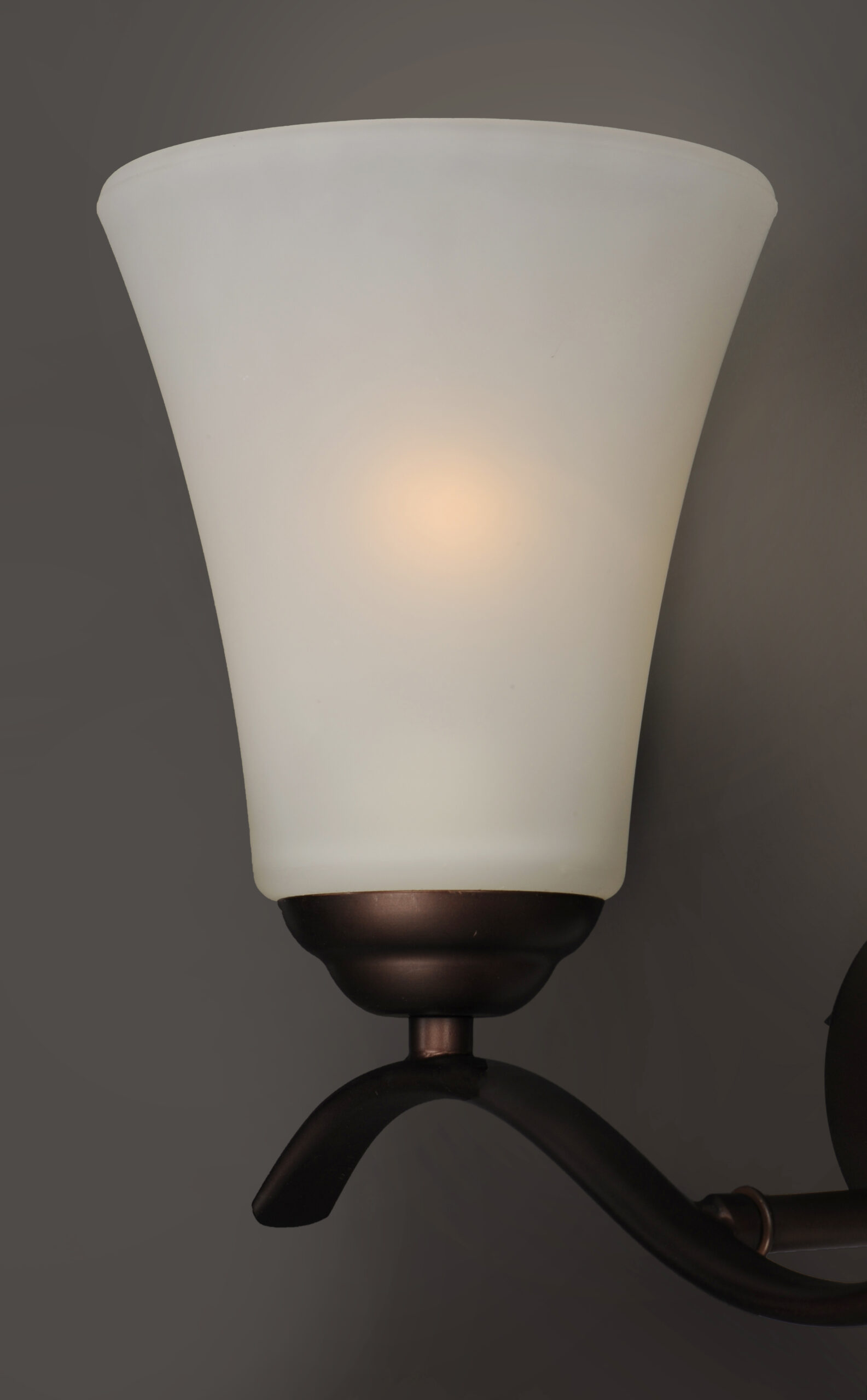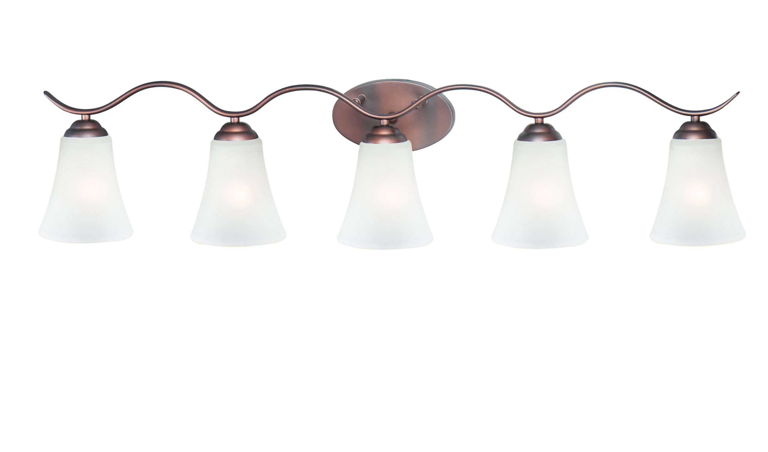 Gently waving arms of Satin Nickel or Oil Rubbed Bronze support tall-profile Frosted glass shades creating a scale normally not found in this category of lighting. The bath vanity may be installed up or down and also includes a Polished Chrome finish.