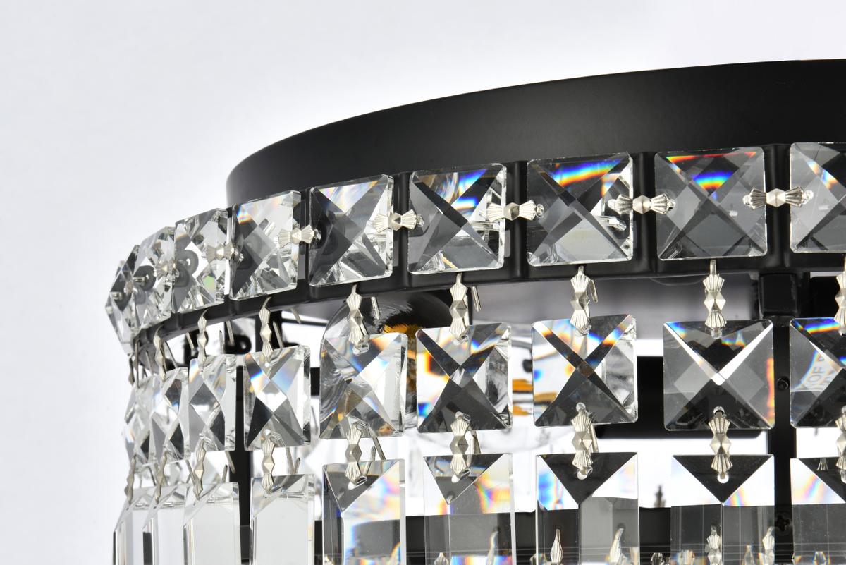 A riot of shapes and textures, Maxime collection flush mounts sparkle in a mosaic of crystal tiles. Square and rectangular precision-cut crystals form the flamboyant exterior while faceted crystal balls create a bubbled effect for light to shine through beneath. Available in a black or chrome finish with clear crystals, these lamps are a luxurious addition to a kitchen, stairwell, foyer, or living room.