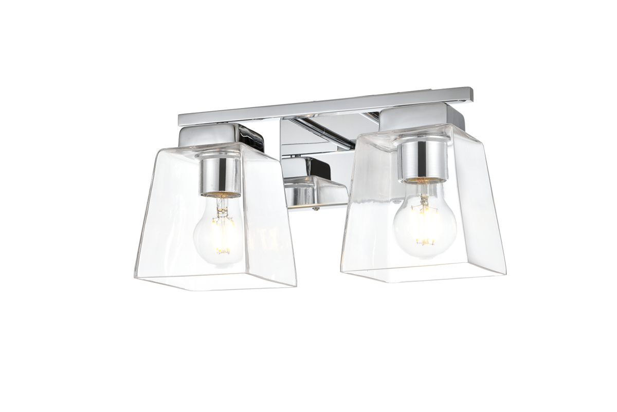Defined by a sleek metal arm extends to suspend the clear bell glass shade. A contemporary stunner, it shows off the straight line details from the backplate and the streamline thin metal arm. Compatible with dimmers, so you’ll have the right amount of light in any given time of the day. Completely versatile, you can place this wall light as an uplight or downlight. Rated for use in damp locations, this will work perfectly over a vanity in your bathroom.
