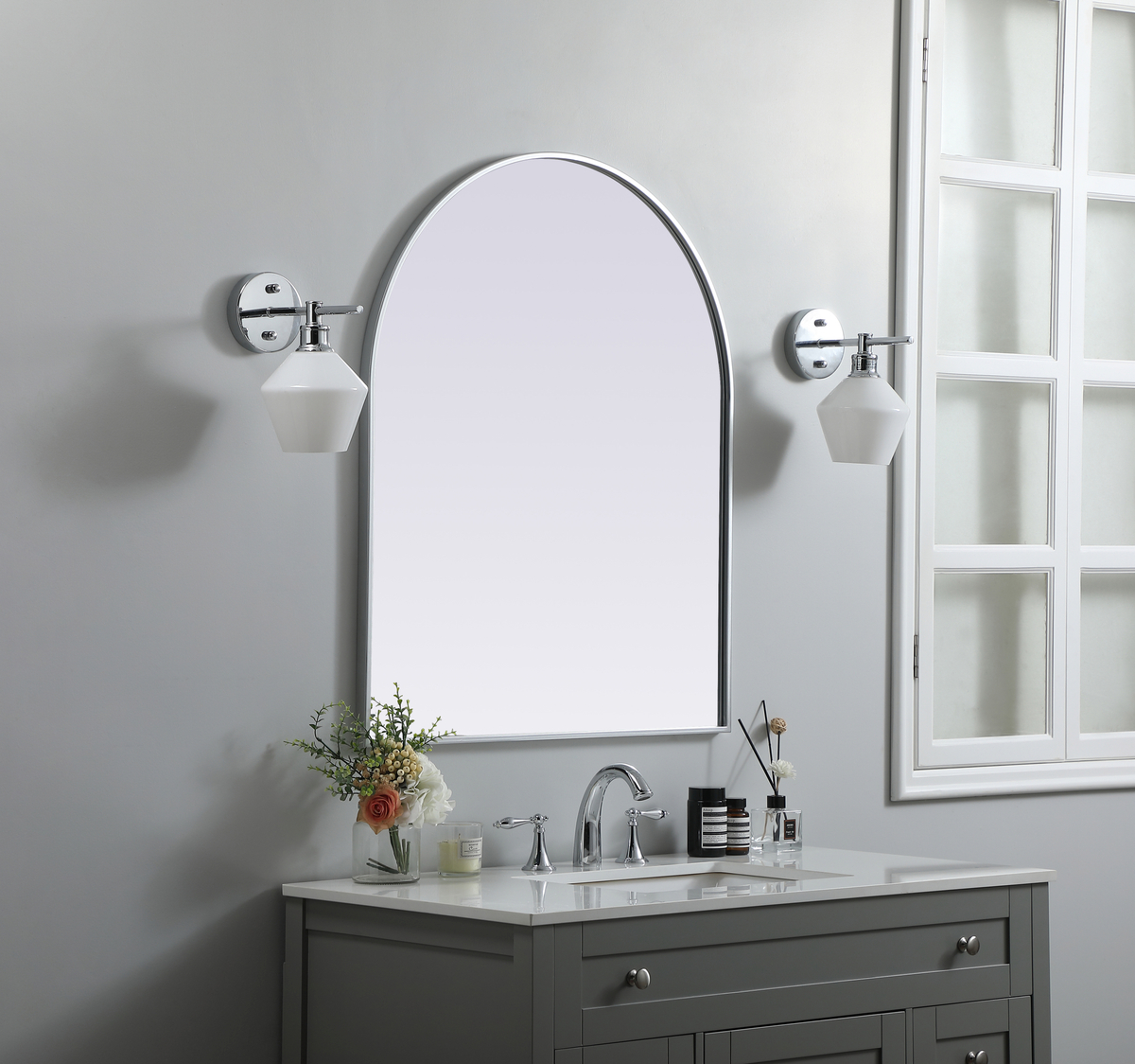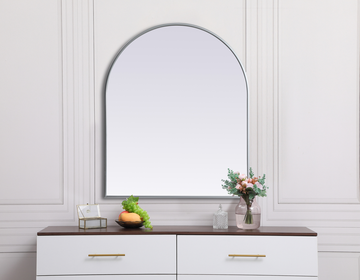 Metal Frame Arch Mirror 30×36 Inch in Silver