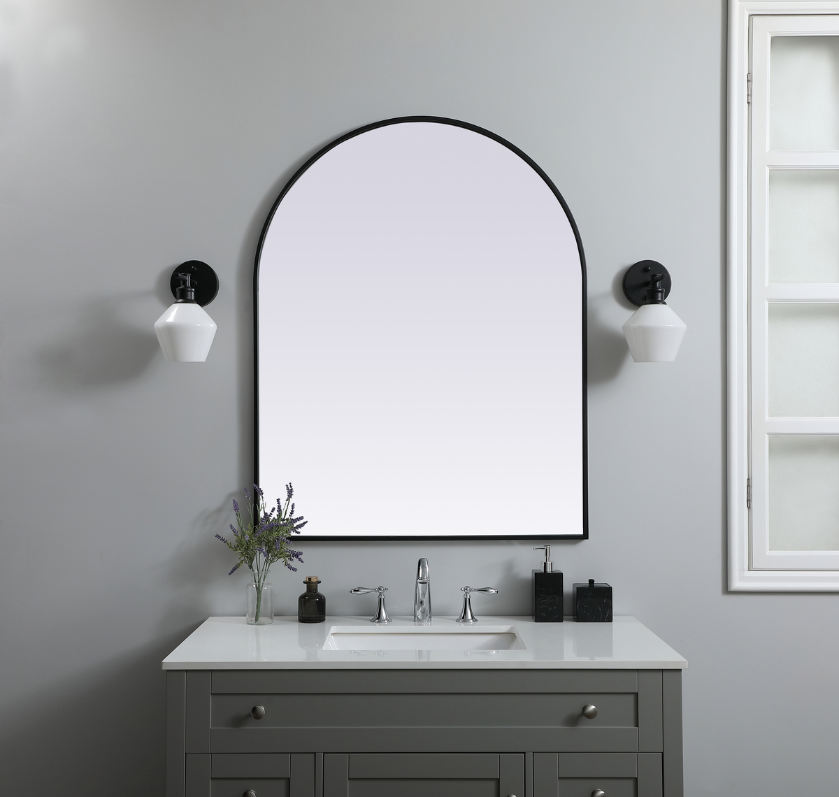 Metal Frame Arch Mirror 33×42 Inch in Black