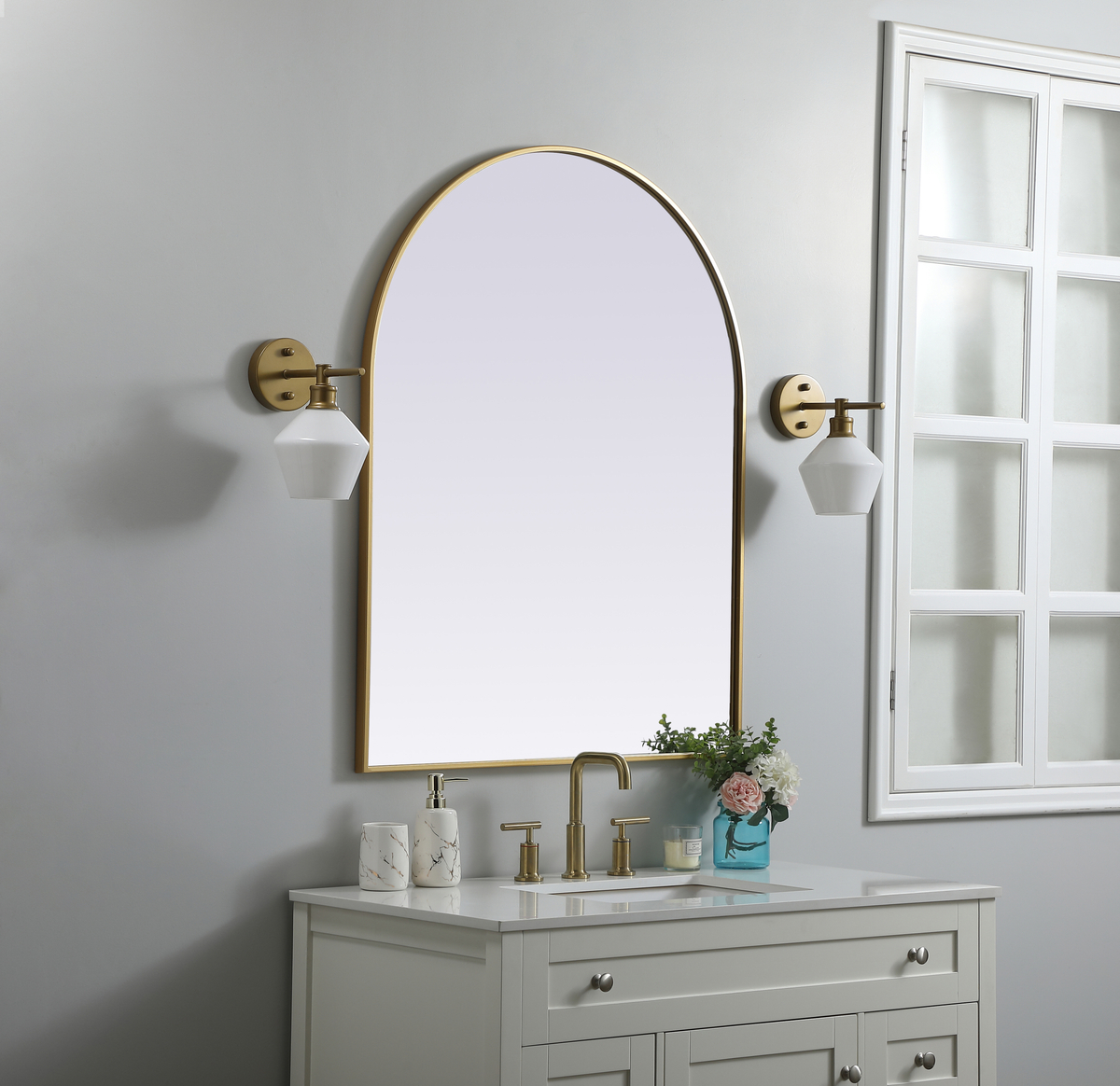 Metal Frame Arch Mirror 33×42 Inch in Brass