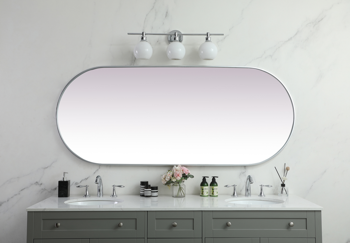 Modern pill-shaped silhouette mirror is an architectural accent in your home.