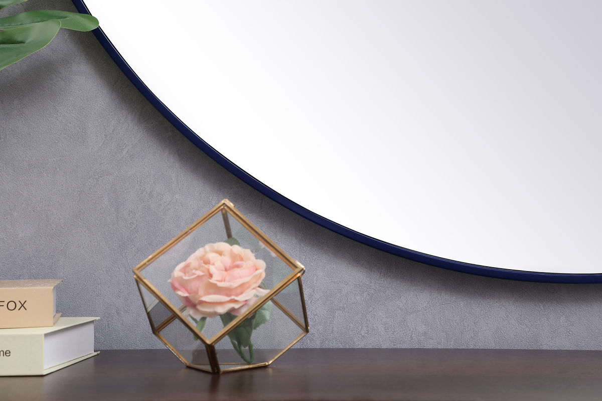 Metal frame round mirror 45 inch in Blue