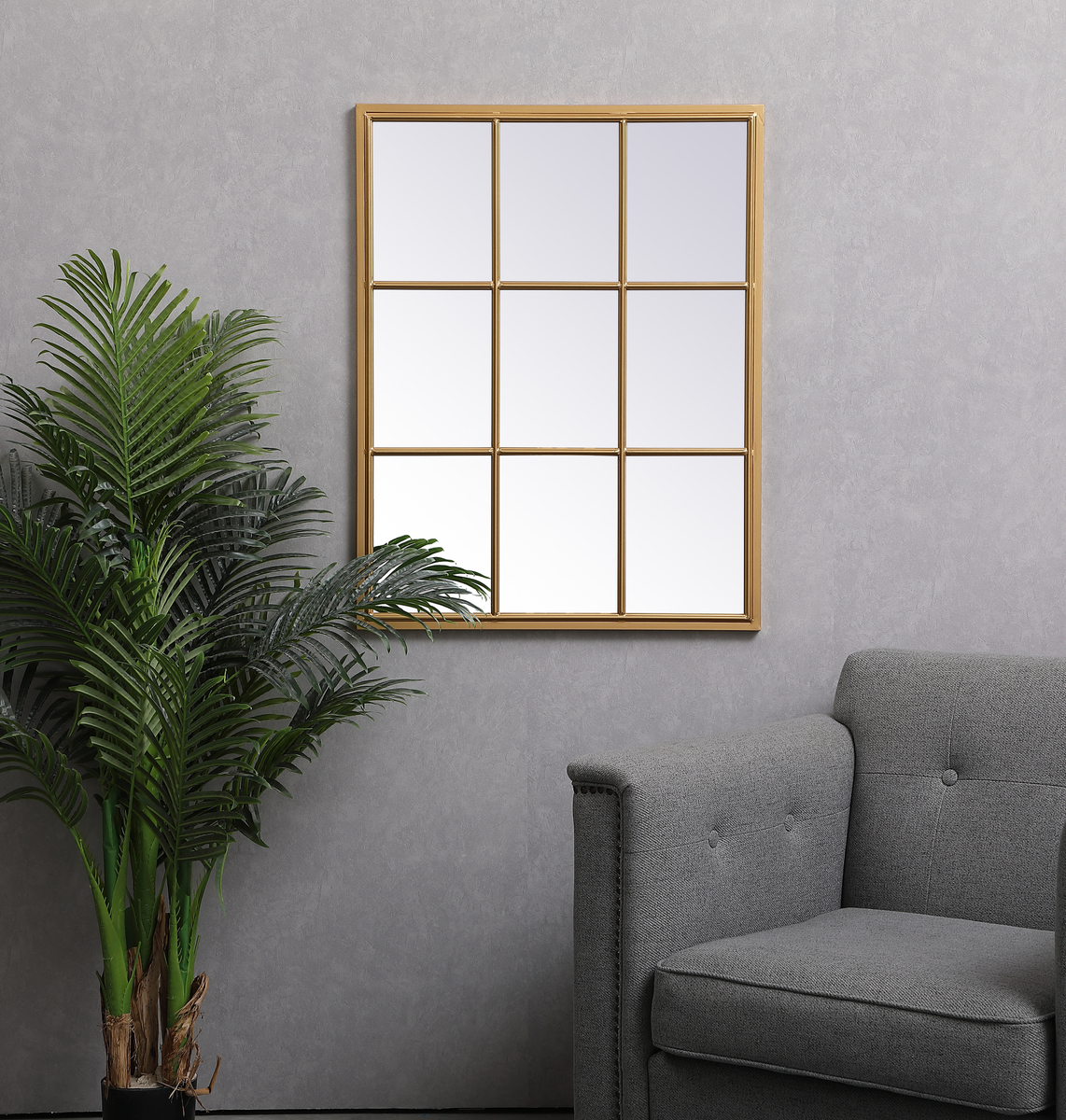 Metal windowpane mirror 28 inch x 36 inch in Brass