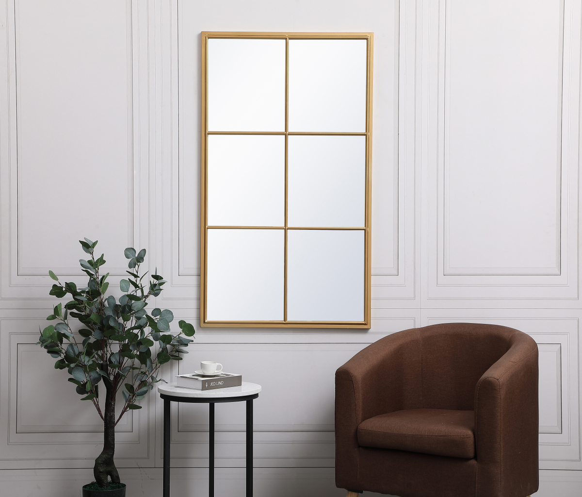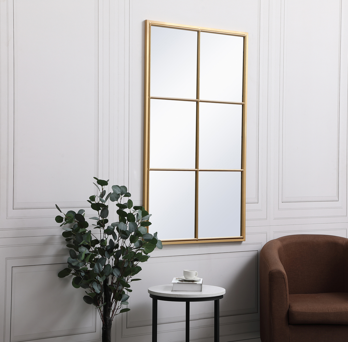 Metal windowpane mirror 28 inch x 48 inch in Brass