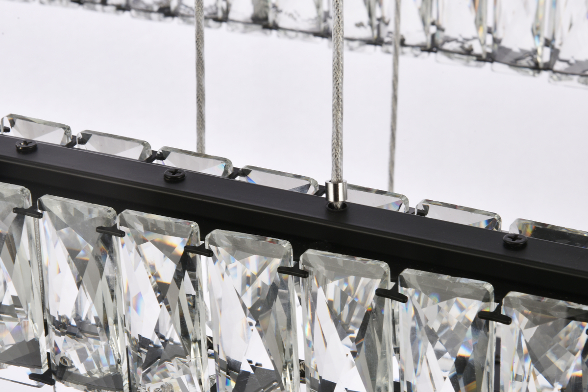Diamonds are a girls best friend, and sparkling Monroe collection hanging fixtures take Marilyns famous lines to heart for women and men alike. A minimal stainless-steel frame becomes dazzling when it is covered entirely with rectangular and square spectacularly faceted clear crystals. The oblong design hangs from almost invisible wires with brilliant integrated LED shining unseen from within. Stunning when placed in a dining room, kitchen, living room, or bedroom.