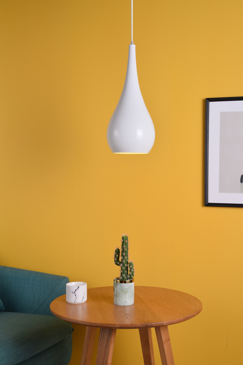 Set the right mood in a kitchen, office, or bedroom with the Nora collection hanging lights. A sleek teardrop shaped aluminum shade come in a sexy white exterior and interior finish, giving this pendant lamp just the right amount of attitude.