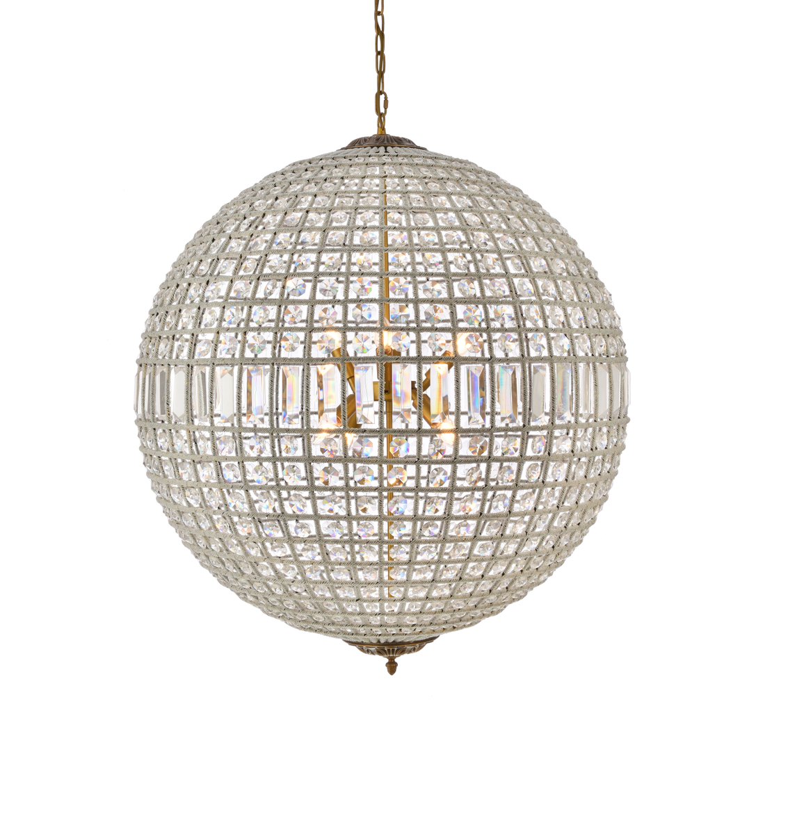 Spherical exterior composed of multifaceted, royal-cut clear crystals