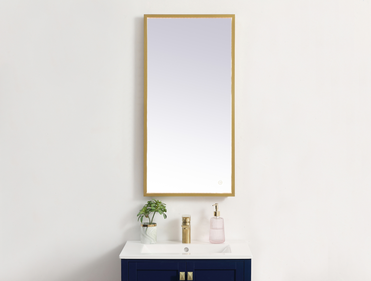 Pier 18×36 inch LED mirror with adjustable color temperature 3000K/4200K/6400K in brass