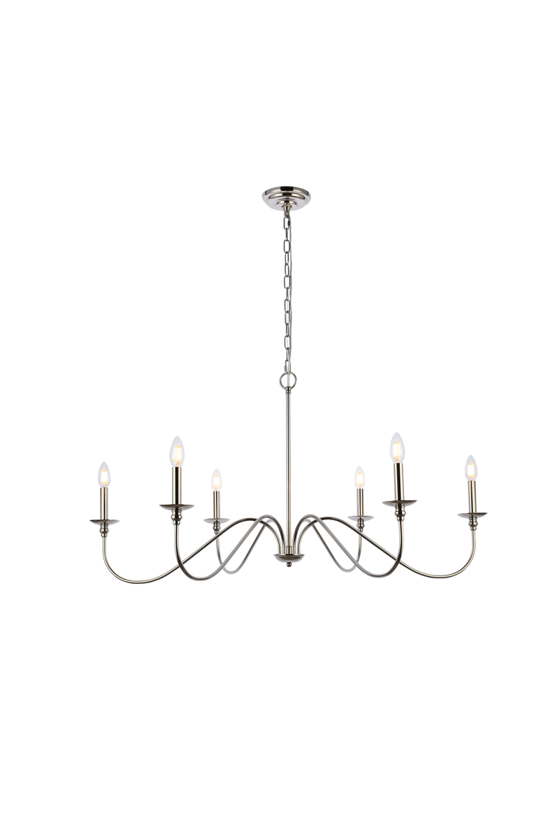 When you need a chandelier to brighten and accentuate a space without visually overpowering it, look to the clean, airy silhouette of the Rohan model. This tastefully simple fixture is Noteworthy for its understated beauty in a relatively large 48 inch span, with six gracefully undulating arms reaching wide to support petite bobèches and candelabra-style stems (bulbs Not included).