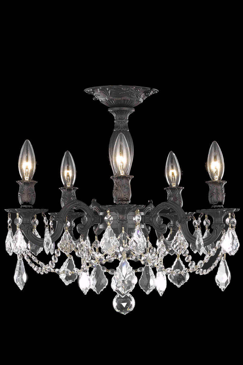 Rosalia 5 light Dark Bronze Flush Mount Clear Royal Cut Crystal