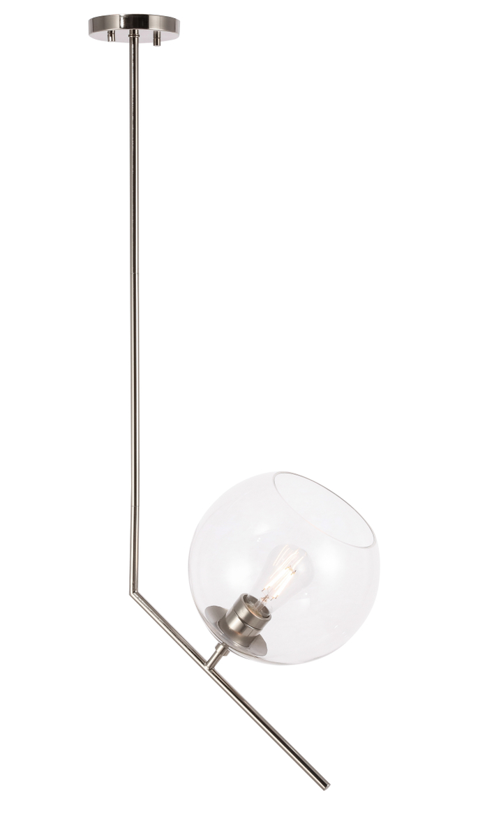 The Ryland Collection Pendant adds sophisticated elegance while still maintaining playful whimsy. The clean lines of the adjustable rod supports the light that is enclosed within the clear ball shade. Available in a brass, chrome, and two-toned black and brass finish, this fixture will add contemporary freshness to any room, your guests sure to notice your impeccable tastes in design (light bulbs not included).