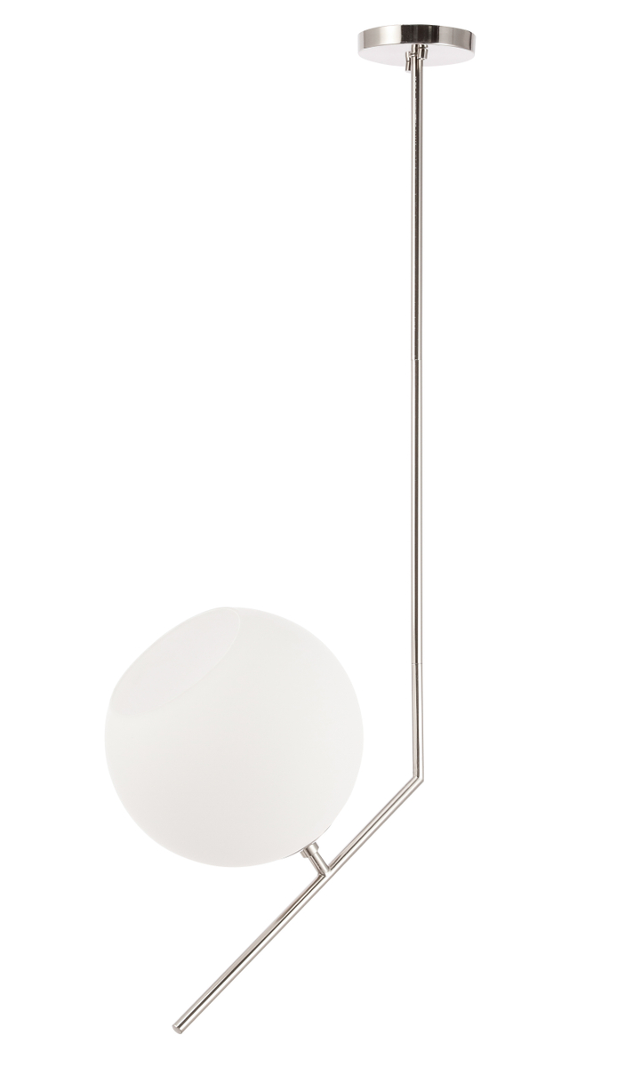 The Ryland Collection Pendant adds sophisticated elegance while still maintaining playful whimsy. The clean lines of the adjustable rod supports the light that is enclosed within the white frosted ball shade. Available in a brass, chrome, and two-toned black and brass finish, this fixture will add contemporary freshness to any room, your guests sure to notice your impeccable tastes in design (light bulbs not included).