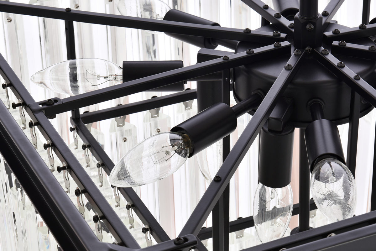 Crafted with a durable iron square frame, this chandelier ensures long-lasting quality and stability. The iron frame adds a sleek and contemporary touch, perfectly complementing the 9 inch long sparkling crystal rods.