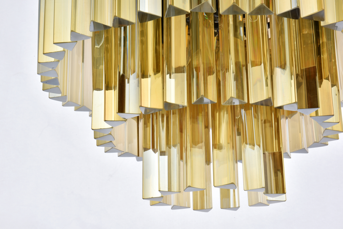 Three tiers of royal-cut golden-teak crystals