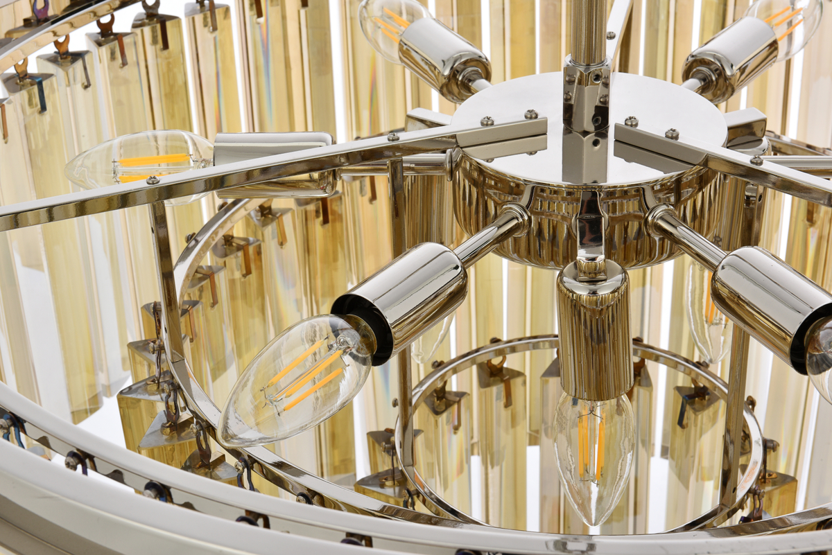 Sydney 9 light polished nickel Chandelier Golden Teak (Smoky) Royal Cut Crystal