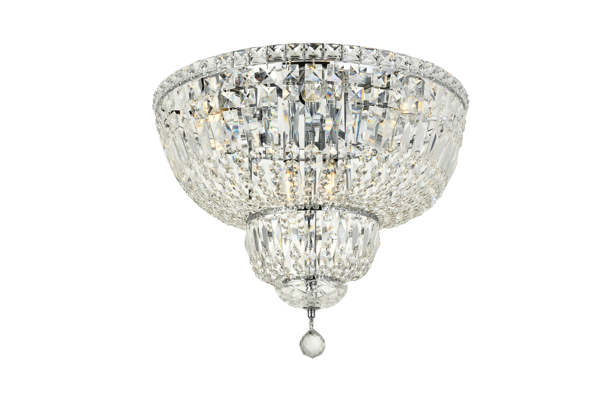 Tranquil 10 light Chrome Flush Mount Clear Royal Cut Crystal