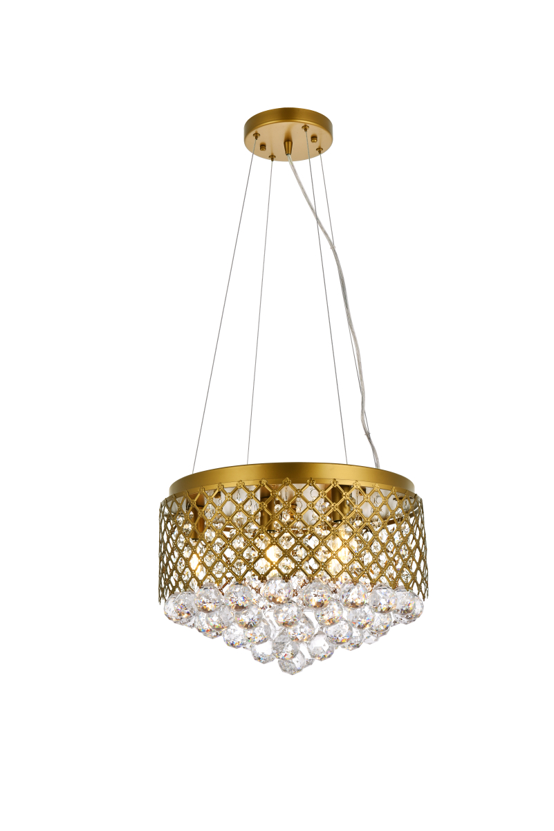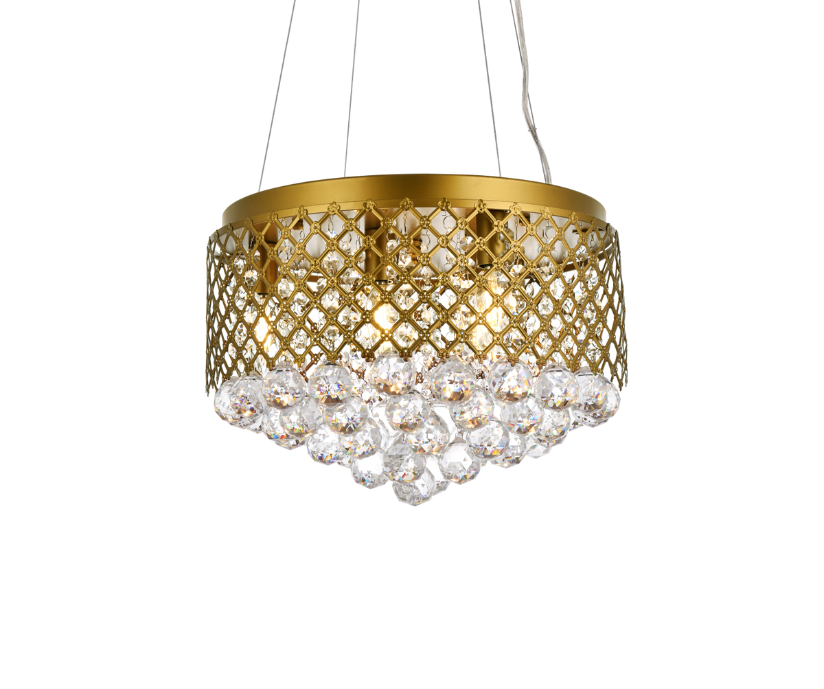 Enjoy the shimmering beauty of the Tully pendant. The elegant lattice metal curtain allows for the hanging crystals to play and dance around the illuminating light, with larger crystals at the base peeking out to say hello. Lights on or off, this gorgeous pendant will surely make quite a statement in your home!
