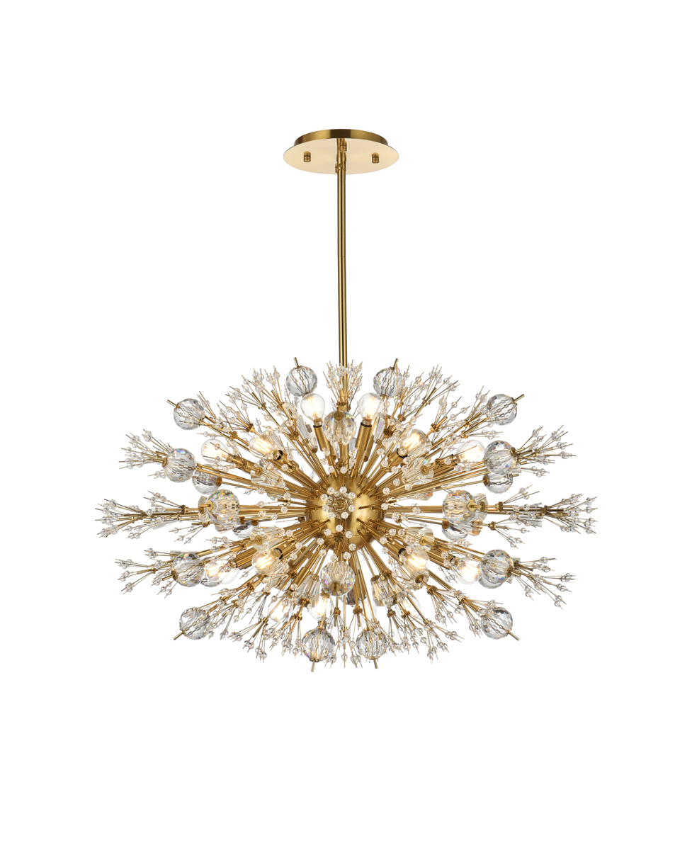 Vera 36 inch crystal starburst oval pendant in gold
