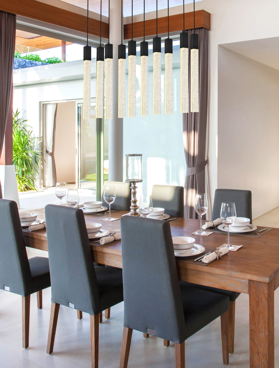 Crystal raindrops floating in a crystal bar balanced in mid-air. Everything about our Weston Collection is ethereal. This collection can be placed in any room of your home as an accent or as a primary feature. When lit up in the evening they are truly an amazing sight, sure to add the wow factor to your home or workplace.